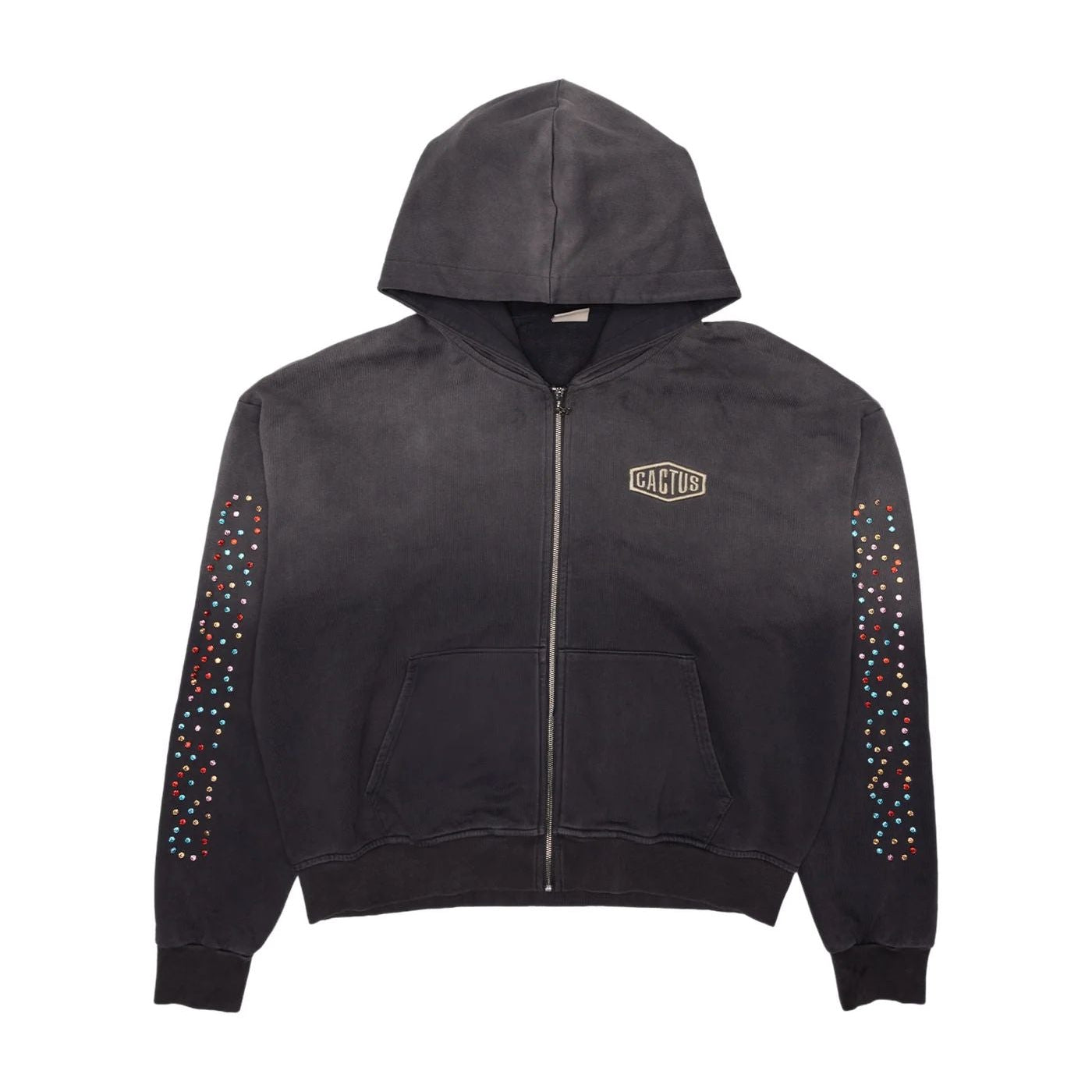 AZVA Studios Black Crystal Cactus Zip Hoodie