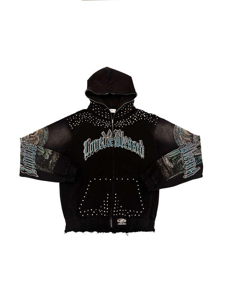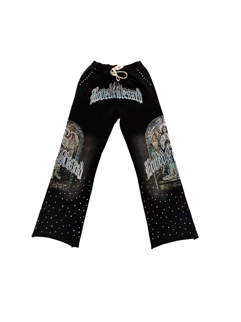 Loved n Blessed Black Rhinestone Sweat Suit Set
